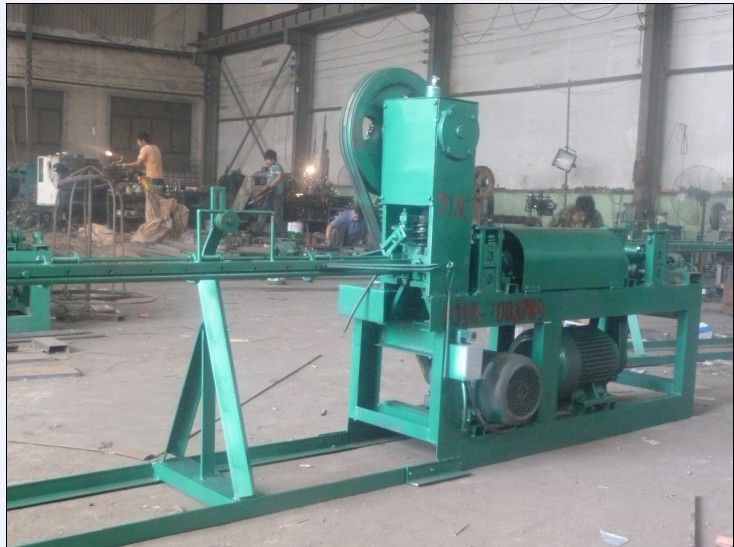 调直机构——由调直辊、调直压块、和两端轴承座构成,完成对线材的调直工作。其动力为安装在机架下部的电动机,通过三角带带动调直轴高速旋转。